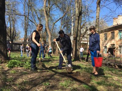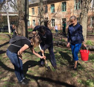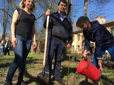 На этот раз "коммунистический десант" отправился в Заречье - в один из дворов по улице Галкина. Здесь молодые коммунисты вместе с жителями высадили саженцы клена и убрали придворовую территорию.