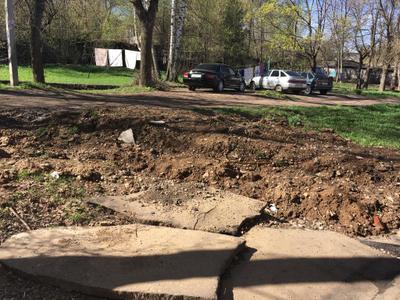 На этот раз люди рассказали депутату-коммунисту, что давно добиваются спила старых деревьев во дворе, которые превратились в сухостой и грозят упасть при первой же сильной грозе. Кроме того, возле подъезда рабочие чинили трубы, но разрытие потом не устранили, землю не разровняли и не уложили асфальт, а также оставили дыру на входе в подъезд - жильцы прикрыли ее фанерой, чтобы не проваливались дети.