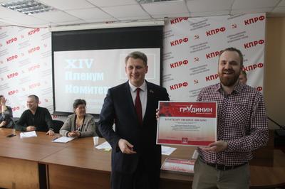 XIV пленум Свердловского регионального отделения КПРФ завершился вручением почетных грамот от Павла Николаевича Грудинина. Грамоты получили коммунисты и сторонники кандидата, внесшие наибольший вклад в проведение президентской кампании 2018.