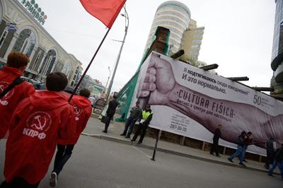 «Ленин, партия, комсомол!», «Революция!», «Наша родина – СССР!», - скандировали активисты.