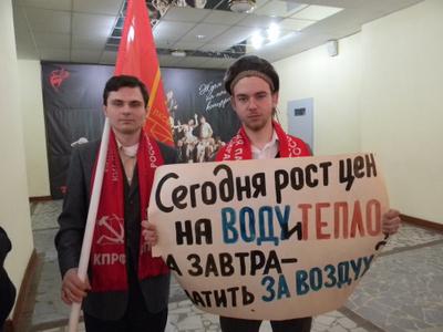 Ну а в лаконичной форме многое из сказанного с трибуны собрания выражали плакаты в руках некоторых его участников и на стенах зала, где проходило собрание: «Сегодня рост цен на воду и тепло, а завтра – платить за воздух?», «Упырь и управляющая компания – найди разницу», «ЖКХ – жулье, коррупция, хапуги»…