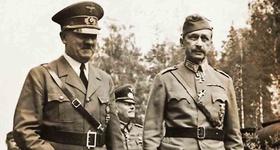 На фото: "генерал-лейтенант русской армии" Карл Маннергейм празднует свое 75-летие в компании нацистского фюрера (Финляндия, 1942 год).
