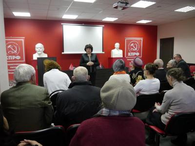 На встрече с активом разговор начался с подведения итогов прошедшей выборной кампании. Тамара Васильевна рассказала, что сама провела 90 встреч, проехала более 32 тысяч километров по трём областям, такого результата для партии не ожидала. В данной ситуации она высказала свою точку зрения и призвала коммунистов соорганизоваться, не падать духом, активно привлекать в ряды КПРФ рабочих.
