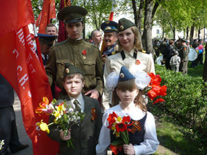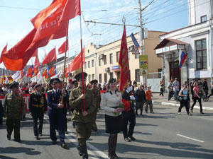 В светлый, любимый тамбовчанами праздник 9 Мая буквально весь город выплеснул на улицы, чтобы отметить 64-ую годовщину Победы, не одно доброе слово сказать ветеранам, прикоснуться памятью к тому огненному и нелегкому времени, вспомнить тех, кто не вернулся с полей брани. И стар и мал стремились к площади В.И. Ленина - той самой, где более шести десятилетий назад тамбовчане услышали радостную весть о капитуляции фашисткой Германии и долгожданном окончании войны.