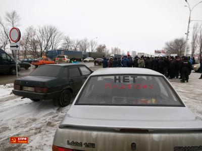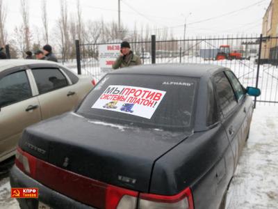 19 ноября в Тамбове у нового автовокзала дальнобойщики провели организационное собрание по подготовке акций протеста против введенной 15 ноября в действие системы «Платон» по сбору платы за проезд по федеральным трассам автомобилей массой свыше 12 тонн.