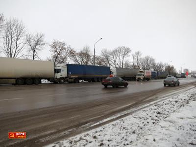 В Тамбове 11 ноября уже проходила акция протеста дальнобойщиков, в этот раз на собрание пришло больше ста человек, а вдоль дороги выстроились десятки большегрузных и легковых машин. Перед протестующими выступил первый секретарь Тамбовского обкома КПРФ А.И. Жидков и предложил здесь же избрать организационный комитет из представителей всех районов и городов области для подготовки более массовой акции уже в центре города с выдвижением не только экономических, но и политических требований. Уже сегодня владельцы большегрузов в Тамбовской области платят более 30 тысяч рублей транспортного налога. Так где же деньги? Почему дороги остаются разбитыми?