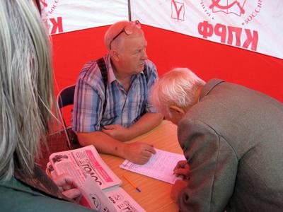 На пикете в красной палатке были организованы сбор подписей за отставку Правительства РФ и раздача партийных газет «Наш голос» и «Правда».