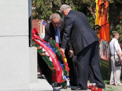 От имени коммунистов секретари Тамбовского ОК КПРФ А.И. Жидков и В.С. Полежаев возложили венки павшим солдатам у мемориала «Вечный огонь» и к подножию танка-памятника «Тамбовский колхозник».