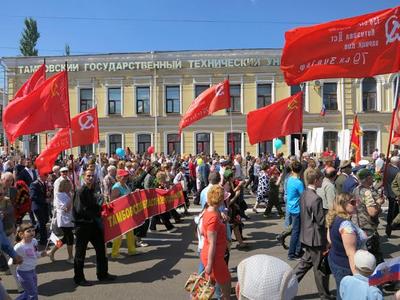 9 мая коммунисты Тамбовского областного отделения партии приняли участие в праздничных мероприятиях, посвященных 71-й годовщине Победы советского народа в Великой Отечественной войне 1941-1945 гг. Колонну КПРФ, одну из самых многочисленных, возглавили гордо реющее красное Знамя Победы, портреты советских военачальников и генералиссимуса И.В. Сталина, флаг с В.И. Лениным. Молодые коммунисты и ветераны партии пронесли по центральным улицам областного центра 10-метровый флаг КПРФ.