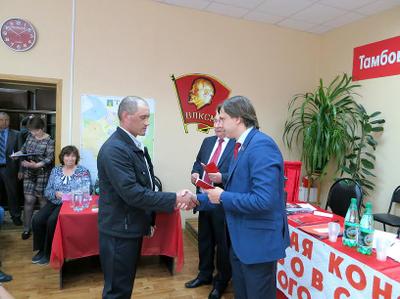 После принятия решения об открытии Конференции и формирования ее рабочих органов А.Е. Клычков и первый секретарь Тамбовского обкома КПРФ А.И. Жидков вручили партийные билеты вступившим в КПРФ новым членам. Затем они наградили почетными грамотами ЦК и обкома ряд районных и городских отделений КПРФ, а также ценными подарками отличившихся за отчётный период партийных активистов.
