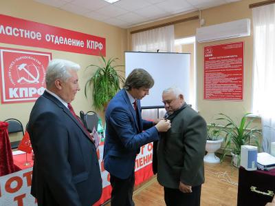 А.Е. Клычков вручил орден «Партийная доблесть» Ю.П. Волкову (Мичуринское РО КПРФ).