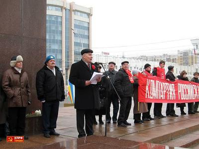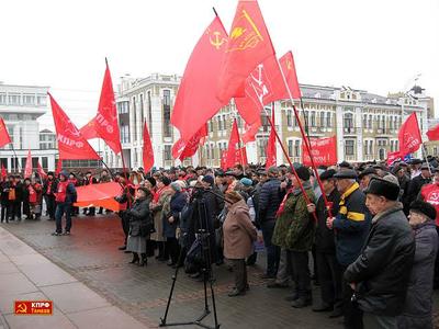 Хмурым осенним утром 7 ноября одна из центральных улиц города Тамбова наполнилась бравурными звуками оркестра. Около пяти сотен человек под красными знамёнами, с лозунгами и речёвками двинулись маршем от ДК «Знамя Труда» к площади Ленина. Сотни прохожих приветствовали колонну коммунистов.