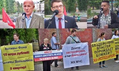 В ходе акции выступил депутат Государственной Думы РФ Юрий Синельщиков (фракция КПРФ, зампредседателя Комитета по гражданскому, уголовному, арбитражному и процессуальному законодательству). Юрий Петрович отметил, что "государство никак не обеспечило гарантии дольщикам, проблема нарастает, становится актуальной". Кое-что делается, конечно. Например, введена уголовная ответственность для тех, кто собирает деньги на строительство жилых домов, но затем не выполняет своих обязательств (статья 200, 3.1, была принята в мае этого года). Но, к сожалению, пока ничего не сделано для того, чтобы решить проблему уже обманутых людей. Если на выборах 18 сентября КПРФ наберет парламентское большинство, эту проблему станет возможно решить законодательно. Это не сложные меры, они достаточно понятные, поэтому я настоятельно рекомендую вам подумать, за кого вы будете голосовать, - подчеркнул выступавший.