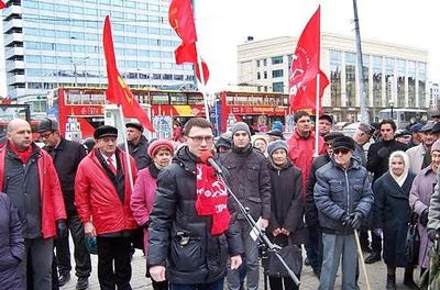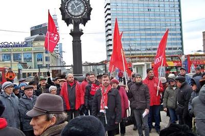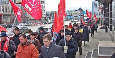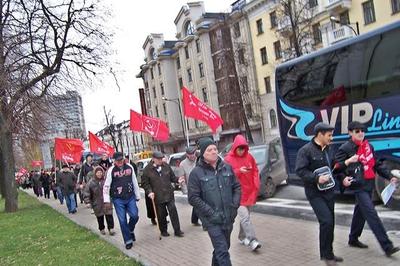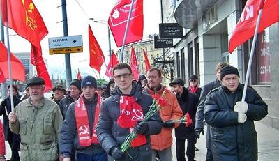 Маршрут КПРФ проходил по улице Пушкина через Ленинский садик в сопровождении полиции, но на этот раз обошлось без каких-либо эксцессов.