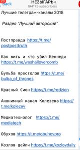 В этом контексте представляет интерес, опубликованный по итогам 2018 года один из рейтингов, составленный популярным (194 тыс. подписчиков) telegram-каналом «Незыгарь» ().