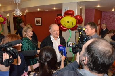 КОР: На концерт по-соседски зашел и лидер КПРФ Геннадий Зюганов. Весь прошедший год его партия оказывала оставшимся на Донбассе мирным жителям посильную помощь.