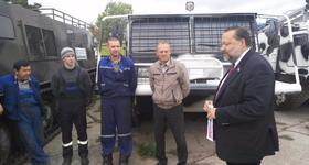 Приятной неожиданностью сталодля Дорохина присутствие коммунистической символики на мощных вездеходах и активное желание заводчан поддержать на выборах КПРФ.