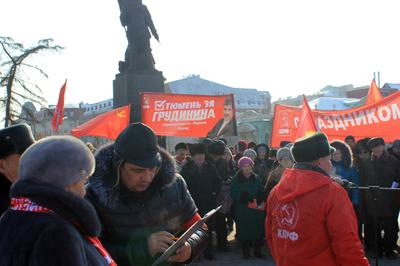 На площадь Борцов революции люди начали подходить заранее. Четырнадцатиградусный мороз не испугал тюменцев. Красные флаги и транспаранты веяли над шеренгами митингующих. Публичное мероприятие собрало более 250 участников, не только коммунистов и сторонников партии, но и представителей широкой общественности. На митинге присутствовали наблюдатели ОБСЕ.