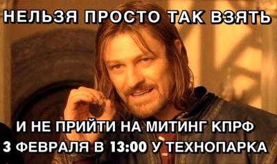 «Нельзя просто так взять и не прийти на митинг», - сообщает Боромир из «Властелина колец», использованный КПРФ в качестве ещё одного мема ().
