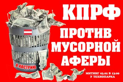 3 февраля КПРФ проводит митинг в Тюмени против цен на вывоз мусора, который состоится в 13 часов на площади у Технопарка.