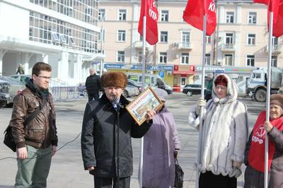 На митинге выступил первый секретарь Тюменского обкома РКРП Александр Черепанов, который сказал о том, что Россия должна ввести санкции по отношению к Америке и Евросоюзу. Пора уже давно развивать свою промышленность и выйти из состава ВТО.