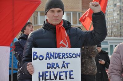 В это время один из участников митинга держал плакат на котором было написано «Бу Андерссон иди в ад», надпись для того, чтобы новый глава АвтоВАЗа понял ее без услуг переводчика была сделана на его родном шведском языке («Bo Andersson dra еt helvete»).