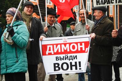 В пятницу 25 мая коммунисты и сторонники партии вышли на пикет с требованием отставки недавно вновь назначенного премьер-министром Дмитрия Медведева. Участники акции также выразили протест против инициативы правительства по повышению пенсионного возраста.