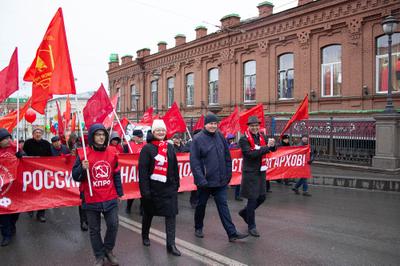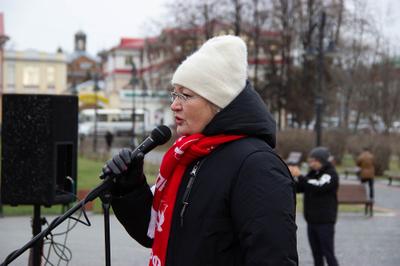 Первый секретарь Томского обкома КПРФ, руководитель фракции в Законодательной Думе Томской области Наталья Барышникова от имени Томского областного комитета партии поздравила с Днём Октябрьской социалистической революции всех, кто вышел, чтобы выразить протест против олигархической, вороватой власти. Наталья Барышникова отметила, что в сегодняшних условиях день 7 ноября приобрёл особое звучание: