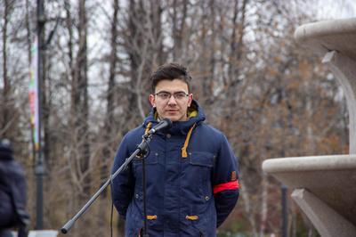 По завершению шествия у фонтана на Новособорной площади состоялся митинг. Его открыл секретарь Томской областной организации ЛКСМ РФ Вячеслав Третьяков.