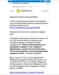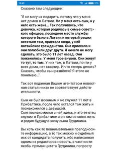 Как можно видеть, ИА «Интерфакс» впрямую соврало, сообщив, в частности, что служившим в армии военным был не отец жены Артема Грудинина, а сам Артем Грудинин, который якобы «остался жить в Латвии».
