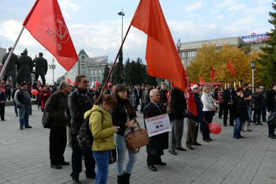 Сотни людей — от мэра Новосибирска Анатолия Локтя до простых горожан — пришли 24 сентября на площадь Ленина, чтобы поддержать сражающийся против карателей киевской хунты Донбасс. В этот день главная площадь Новосибирска стала красной — советские флаги и флаги КПРФ, красные палатки и растяжки вернулись на площадь Ленина, рядом с ними — флаги ДНР и ЛНР, плакаты солидарности с народом Донбасса.