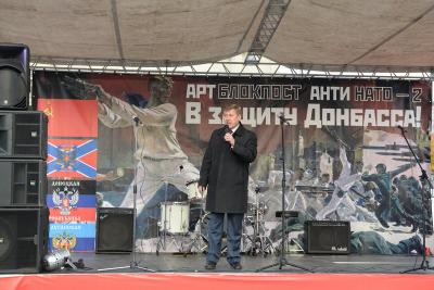 Честь открыть митинг-концерт выпала второму секретарю Новосибирского обкома КПРФ Ренату Сулейманову. Он напомнил о том, как проходил первый арт-блокпост «Анти-НАТО» и отметил, что сейчас силы НАТО во главе с США вплотную подошли к границам России, развязав на Украине настоящую войну. По его словам, новосибирские коммунисты стали первой политической силой в городе, безоговорочно поддержавшей борьбу Юго-Востока Украины за самоопределение. Не случайно лидер новосибирских коммунистов Анатолий Локоть, выдвигаясь в мэры, предложил Новосибирску стать побратимом Севастополю, и победив, сдержал свое обещание. «НАТО — вон из Украины! Да здравствует восстановление Советского Союза!», — закончил свое выступление Ренат Сулейманов.