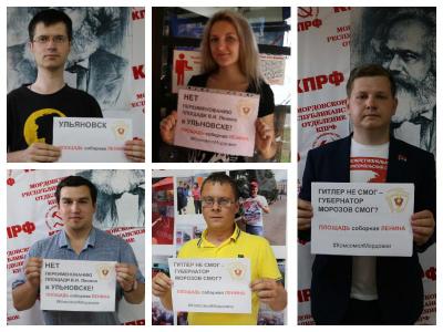 Активисты Ленинского комсомола Республики Мордовия, Нижегородской и Пензенской областей поддержали ульяновцев в борьбе против переименования площади Ленина в «Соборную».