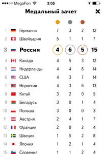 Золото Третьякова стало для России четвертым на ОИ-2014, благодаря чему сборная поднялась на третье место в медальном зачете. Кроме того, Россия удерживает лидерство по общему числу наград - в активе сборной 15 медалей. Ранее в субботу золотую медаль России в шорт-треке принес Виктор Ан, победив на дистанции 1000 м.