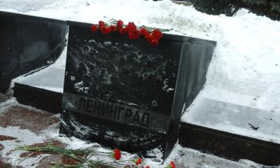 Участники акции почтили памятьжертв той страшной блокады минутой молчания и возложили красные гвоздики к стеле городу-герою Ленинграду.