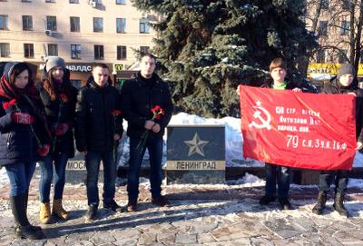 В день воинской славы России – годовщины снятия ленинградской блокады – молодые коммунисты Тулы на площади Победы возложили цветы к стеле в честь города-героя Ленинграда.
