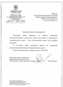 После обращения депутата Тульской городской Думы Алексея Лебедева администрация обязалась ликвидировать свалку на берегу реки Бежки в Пролетарском округе Тулы.