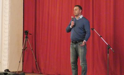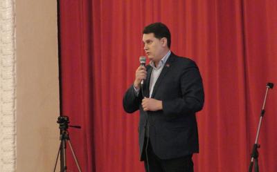 Перед собравшимися в ДК жителями выступили организаторы акции – секретари Тульского обкома КПРФ Алексей Лебедев и Михаил Федоров.