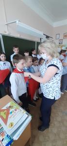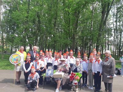 К поздравлениям присоединилась и выпускница 1-ой школы Валентина Ивановна Плотникова, член Бюро Ефремовского ГК КПРФ, заместитель председателя общественной городской организации «Дети войны». Она пожелала ребятам быть верными главному девизу пионеров: «Пионер-всем пример!»
