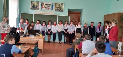 Коммунисты Ефремова Любовь Стаброва и Татьяна Антонова поздравили юных пионеров и в школе 6.