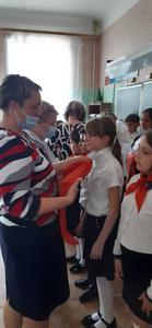 На торжественной церемонии в 1-ой школе директор школы Ирина Денисова поздравила ребят со значимым днем: «Я очень рада, что вы продолжаете лучшие традиции нашей страны, трудового народа!»