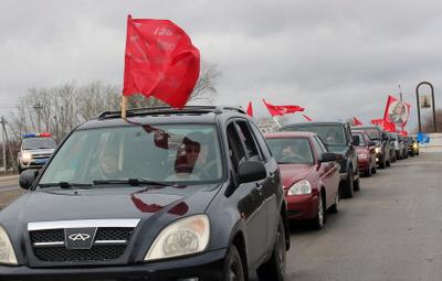 В автопробеге приняли участие коммунисты, ветераны комсомола, сторонники партии. Колонна машин с развевающимися красными флагами проехала по центральным улицам города.