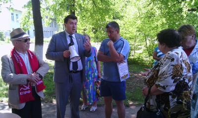 И вот – посёлок Товарковский, и снова депутат-коммунист О.Лебедев поддержал людей, вместе с группой молодых активистов КПРФ, включая члена бюро обкома, депутата Тулгордумы Алексея Лебедева, приехал на митинг протеста. Вёл митинг, на который собралось более 100 человек, что для 7-тысячного посёлка немало, первый секретарь комитета Богородицкого местного отделения КПРФ, депутат районного и городского Собраний Виталий Кушнир.