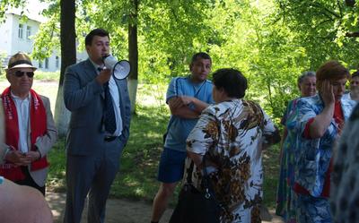 Обстановка на митинге накалялась, народ требовал главу администрации, он же высокомерно заявил, что «с толпой разговаривать не будет», акцию протеста назвал «пиаром коммунистов», а кроме того, выступил в поддержку предприятия-загрязнителя. Но О.Лебедев всё-таки заставил его выйти на всеобщее обозрение и выразил удивление тому, насколько тот не уважает земляков, что позволяет себе приходить на публичное мероприятие в майке и трусах и называть местных жителей «толпой». Депутат указал ему на недопустимость такого поведения, после чего люди взорвались аплодисментами.