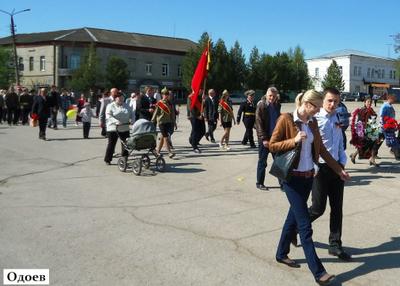 Одоев. Секретарь п/о КПРФ № 1 З.Н. Войткова и член президиума совета ветеранов Г.Е. Кажанов 7 мая, вместе с главой администрации Одоевского района В.А. Косаревым объехали и поздравили ветеранов Великой Отечественной войны. 9 мая коммунисты вместе с членом бюро обкома первым секретарём райкома КПРФ В.В. Винокуровой шли в общей колонне под Знаменем Победы. Начались мероприятия с митинга у мемориала Памяти всем падшим войнам. Член бюро райкома партии, председатель Совета ветеранов Ф.Х. Мельникова поздравила всех собравшихся с праздником и вспомнила о павших героях посёлка в этой кровавой войне. Далее были возложения цветов в сквере Памяти земляков – Героев Советского Союза и к братской могиле. После официальной части коммунисты и приглашённые ветераны вместе с представителями местного казачества провели торжественное собрание.