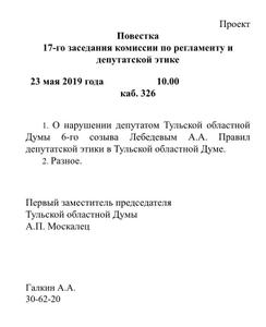 Заседание комиссии намечено на 23 мая. Впрочем, это далеко не первая репрессивная мера в отношении Алексея Лебедева. Единороссам костью в горле встали его разоблачительные выступления против пенсионной и мусорной «реформ», против репрессий в отношении коммунистических и иных гражданских активистов в Тульской области. Не могут они ему простить и обращения в суд против необоснованных тарифов на вывоз и утилизацию твёрдых коммунальных отходов.