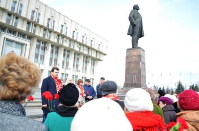В честь для рождения В.И. Ленина к его памятнику были возложены красные гвоздики.