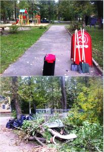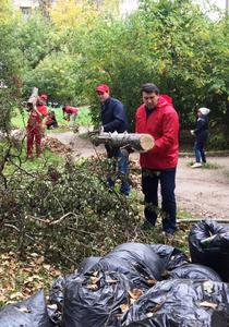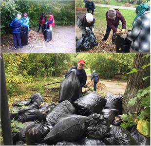 На субботнике было собрано несколько десятков мешков с мусором, распилены и подготовлены для вывоза стволы упавших деревьев, обрезаны кусты, расчищены дорожки.