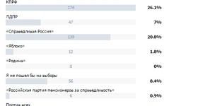 С убедительным перевесом победу в опросе одержала Коммунистическая партия РФ. За нее отдали свой голос более 26% от всех проголосовавших!