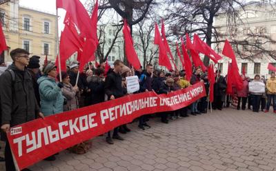 На митинге выступили тульские коммунисты: лидер независимого профсоюза, рабочая завода РТИ Татьяна Косарева, депутат Тульской областной Думы Светлана Белоус, ветеран труда и Вооруженных Сил Владимир Павлов, ветеран партии Валентина Мишина, тульский рабочий Геннадий Беляков, первый секретарь Пролетарского отделения КПРФ Владимир Соколов и другие товарищи.
